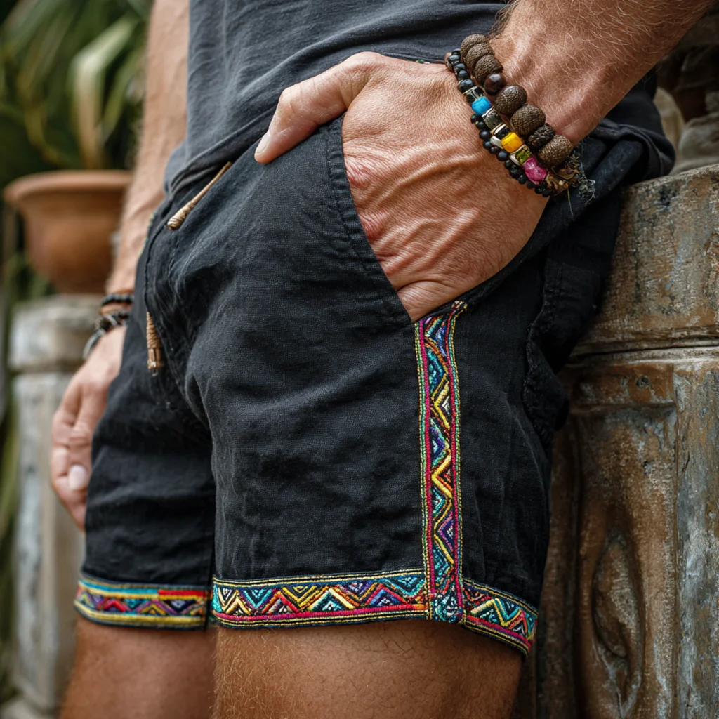 Men's Ethnic-Style Linen Shorts