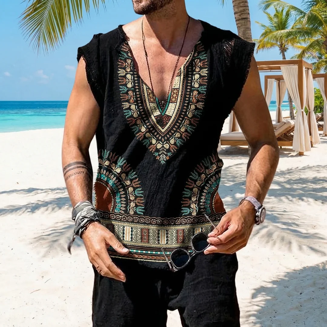• Style: Sleeveless tunic with ethnic embroidery