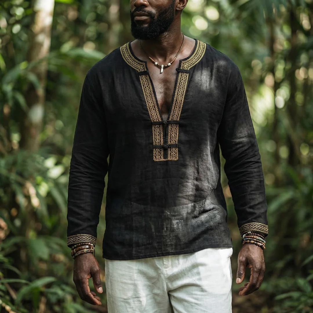 Linen Ribbon Patchwork Button Design Long-sleeved Shirt, Casual, Loose, Breathable And Comfortable Top.-inspireuse