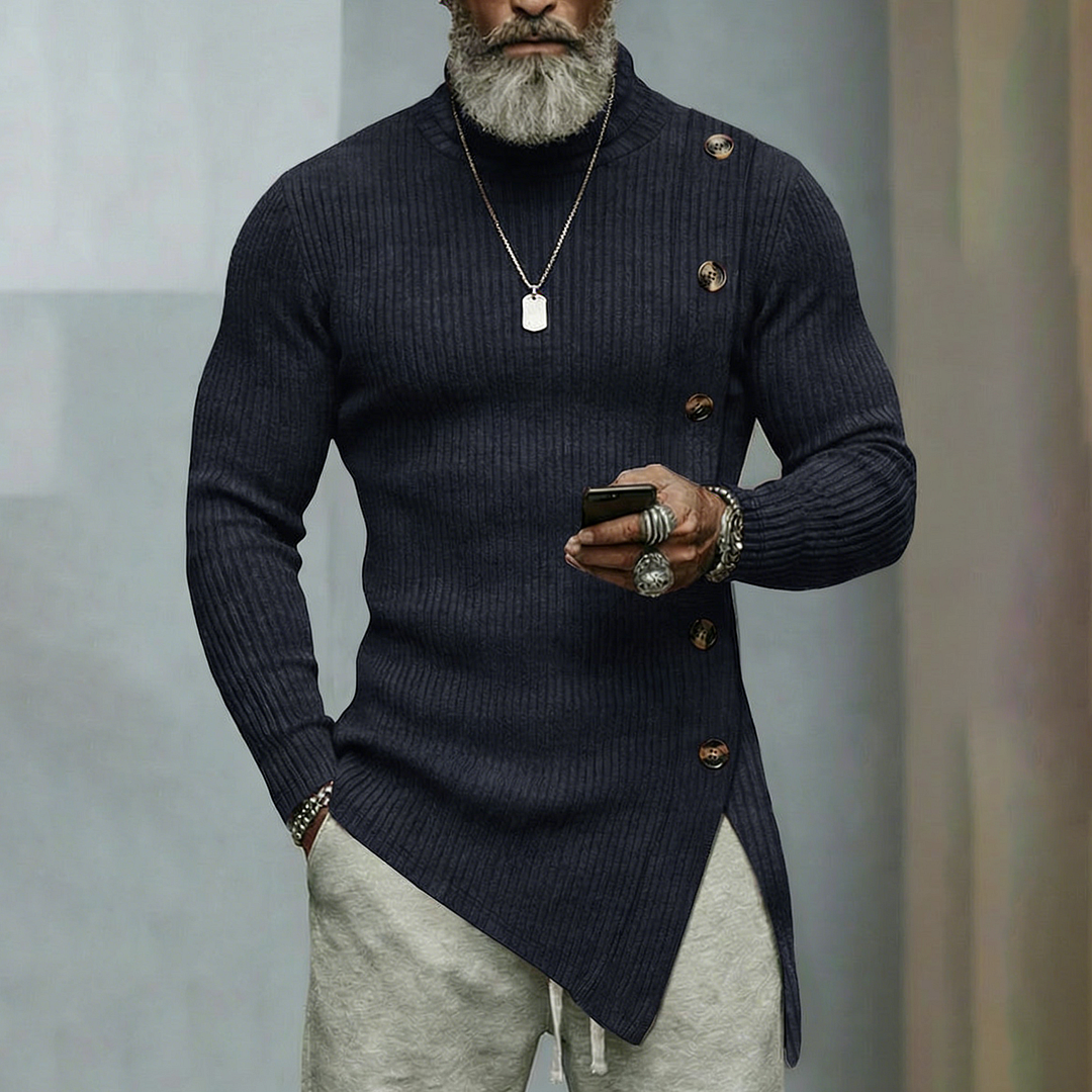 Men's Asymmetrical Zip-Up Ribbed Sweater-inspireuse