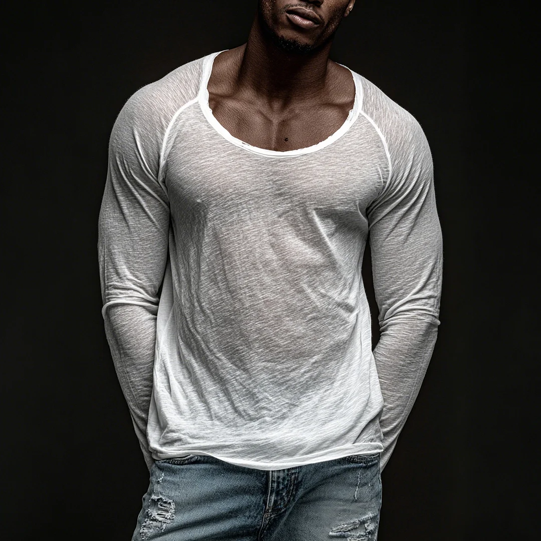 Men's Casual, Comfortable, Basic Pure Cotton T-shirt, Crew Neck, Raglan Long-sleeved Top-inspireuse