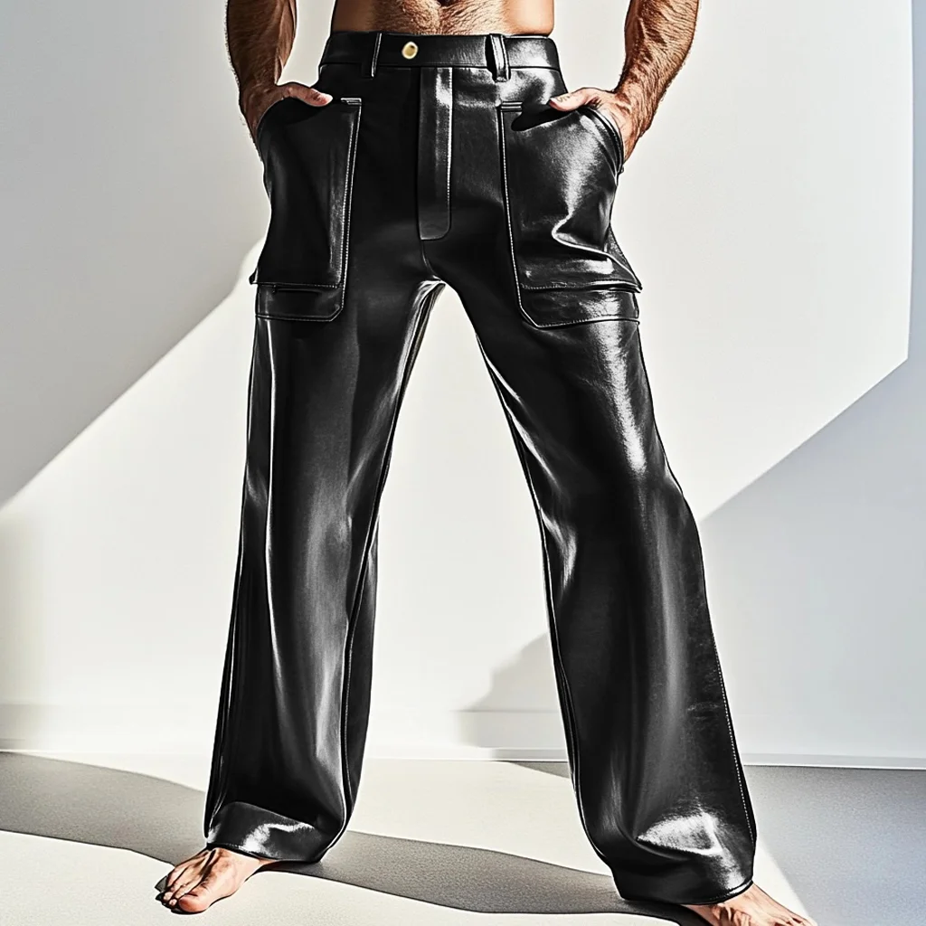 Men's Leather Loose Simple Work Trousers-inspireuse