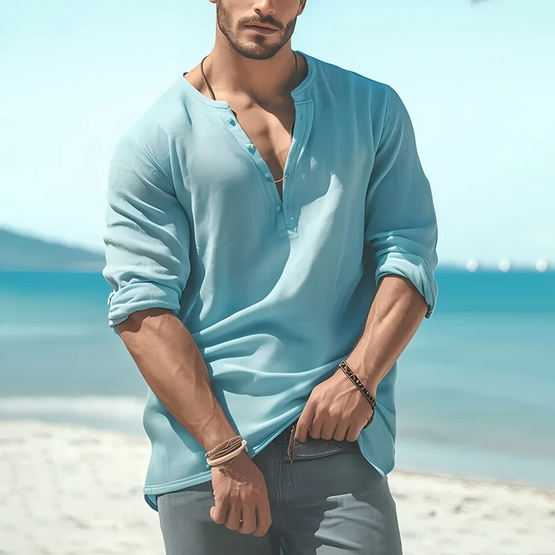 • The buttoned placket adds a touch of sophistication to your casual look.