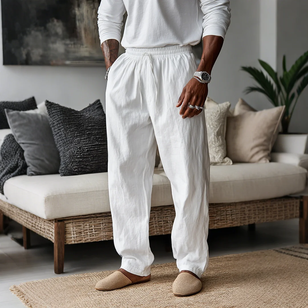 Men's Casual Linen Trousers, Loose Fit, Comfortable, Elastic Waistband, Suitable For Home And Outings.-inspireuse