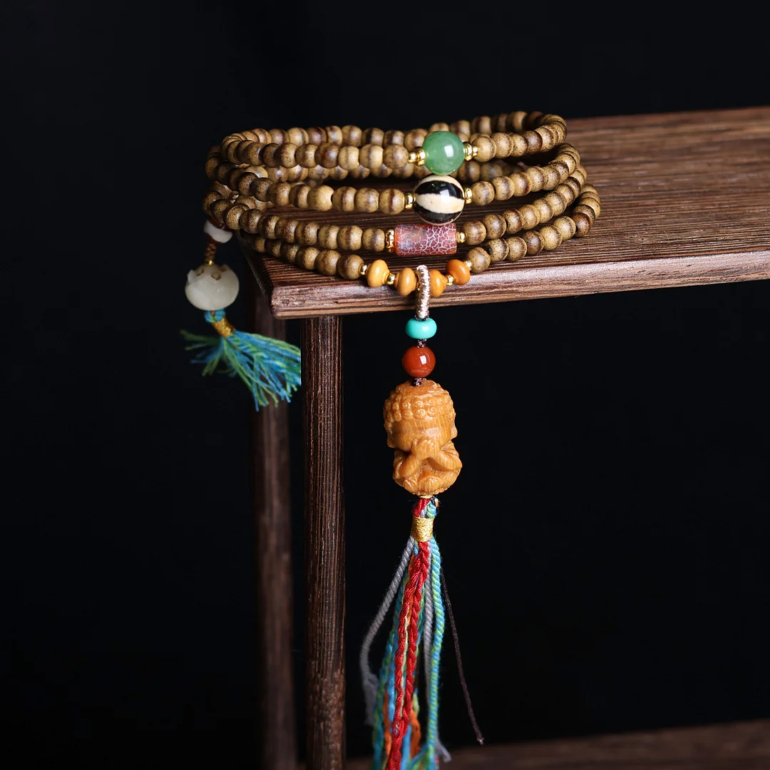 • Material: High-quality agarwood beads combined with semi-precious gemstones (e.g., jade, turquoise)