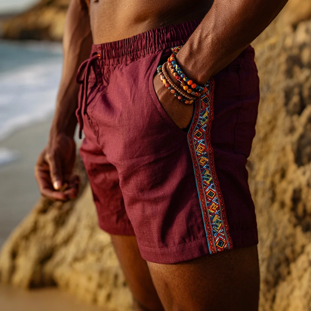 Men's Ethnic-Style Linen Shorts-INSPIREUSE
