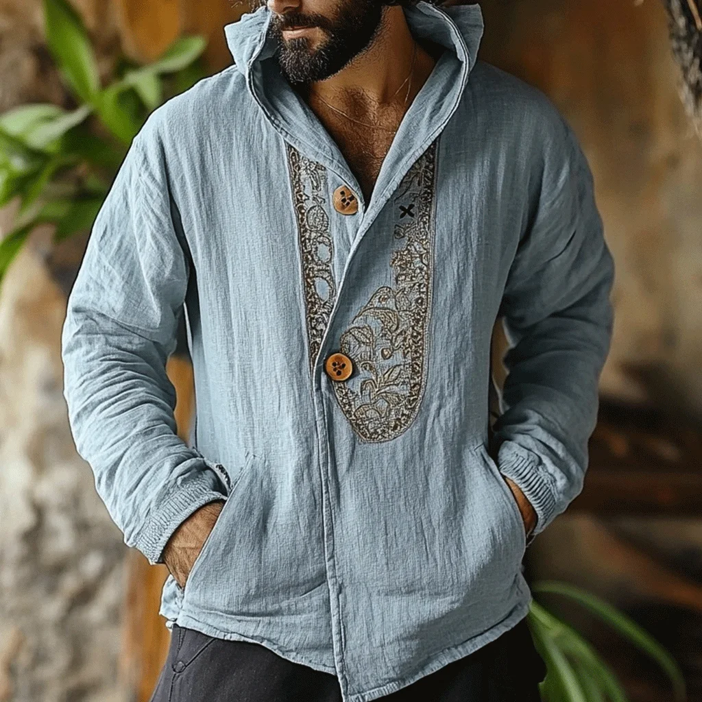 Men's Linen Tribal Hooded Jacket-inspireuse