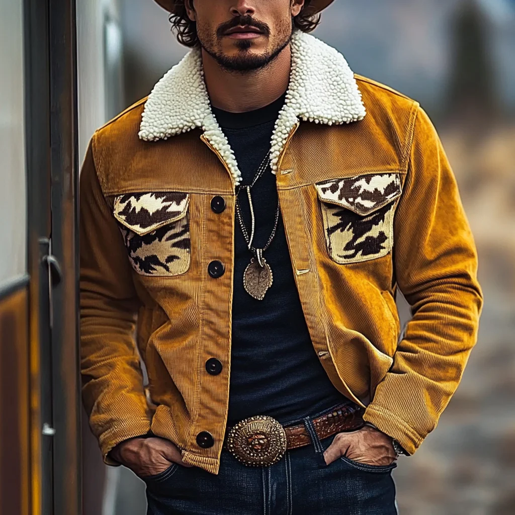 Men's Vintage Western Cowboy Printed Sherpa Jacket-inspireuse
