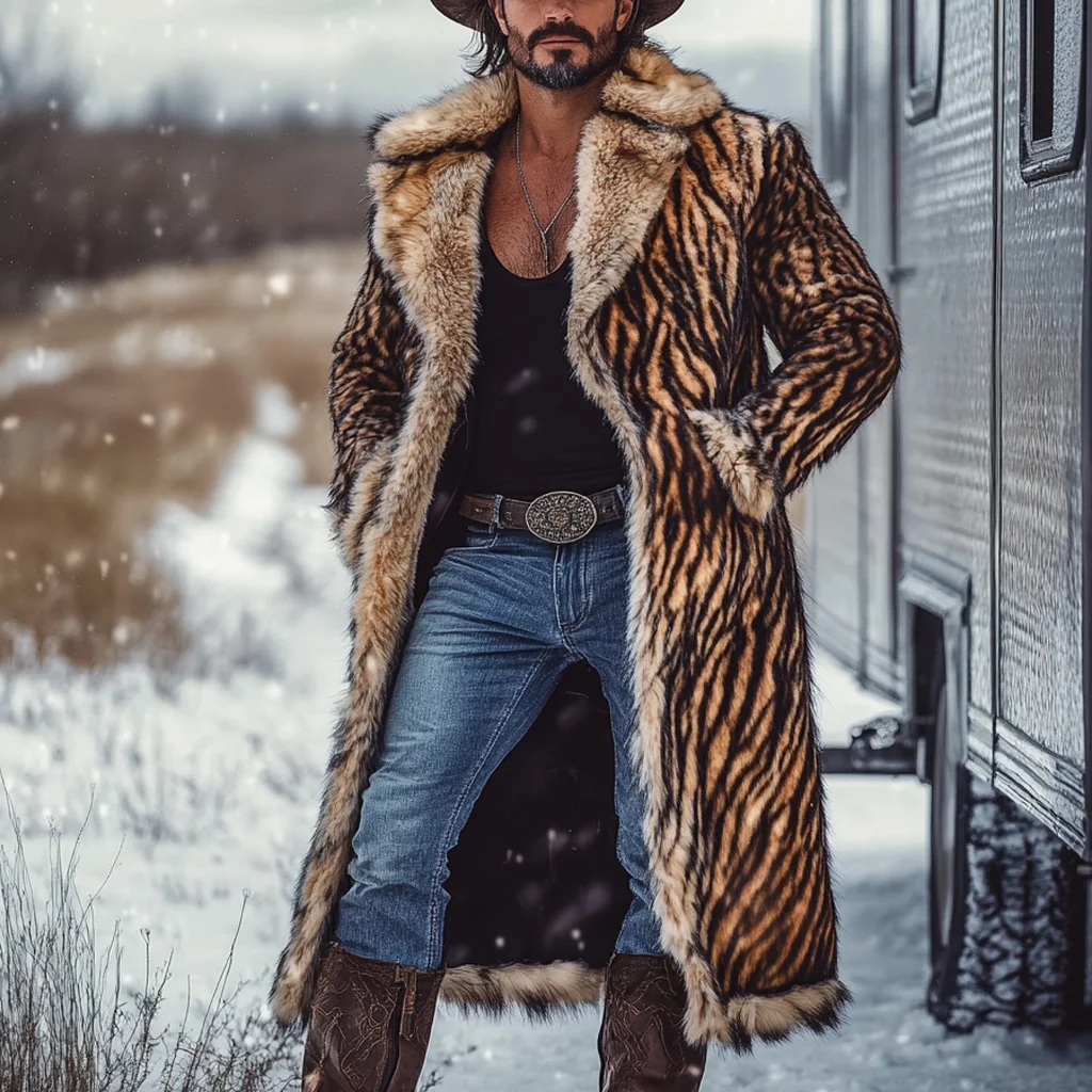 Western Cowboy Winter Warm Vintage Faux Fur Coat Jacket